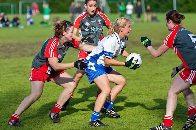 I particularly like the last shot, as the player gets dumped and is about to hit the ground pretty hard, Irish football is not a game for the light hearted. This image gets to grips with the physicality and commitment of the players. The ladies team is also pretty tough, the following 3 photos are from the ladies competition: