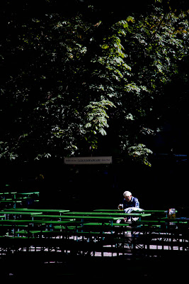Admittedly technically weak, this image still captures the sense of the space and its use, in this case taking a break for a bite to eat. I came back and photographed this scene several times, obtaining better sharpness and using more sensible ISO and shutter speed, but never capturing the combination of people seated and walking, or the lighting.